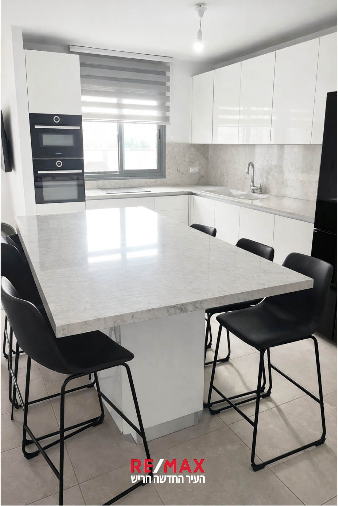מטבח משודרג מאוד עם אי גדול, דירה מתוכננת היטב ונוחה למגורים.